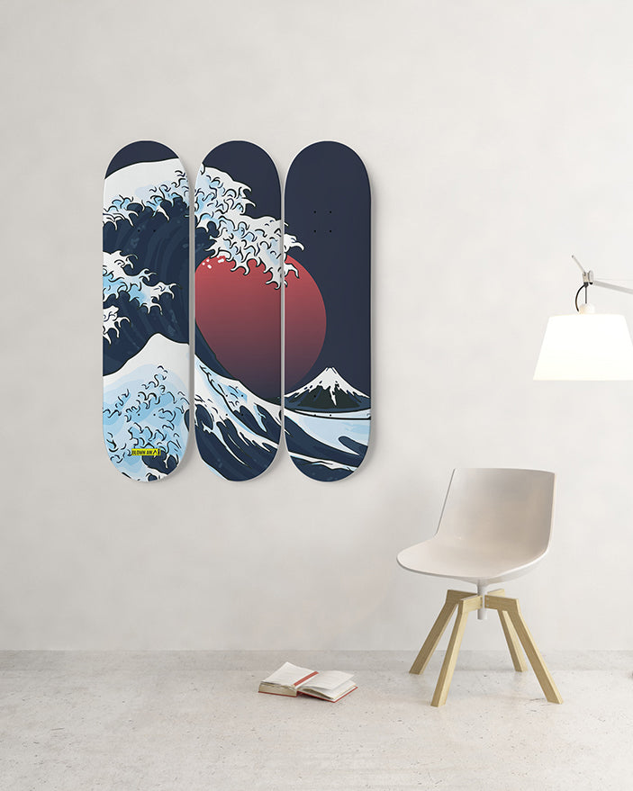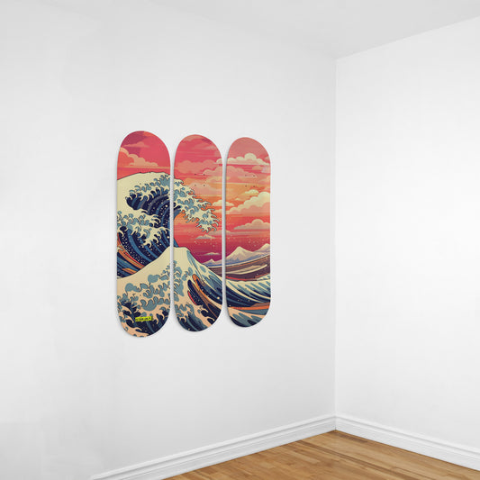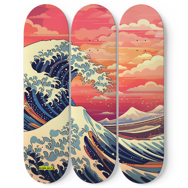 Futuristic The Great Wave Of Kanagawa Triple Skateboard Wall Art