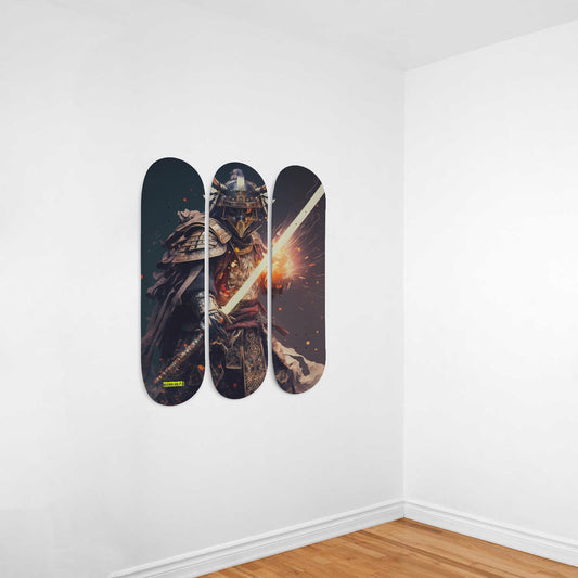 Samurai Warrior Waving A Laser Sword Triple Skateboard Wall Art