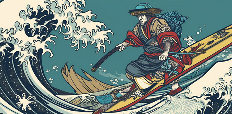 Mad Samurai In The Great Wave Of Kanagawa Single Skateboard Wall Art