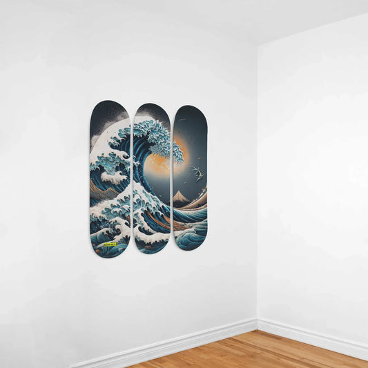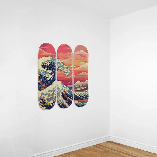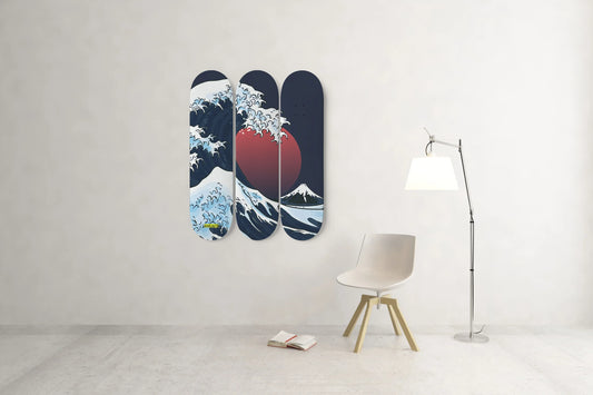 Futuristic The Great Wave Of Kanagawa Triple Skateboard Wall Art