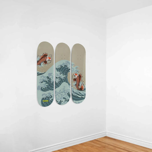Fish Koi Yin Yang In The Great Wave Of Kanagawa Triple Skateboard Wall Art