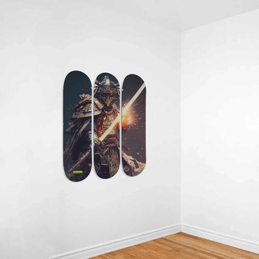 Samurai Warrior Waving A Laser Sword Triple Skateboard Wall Art
