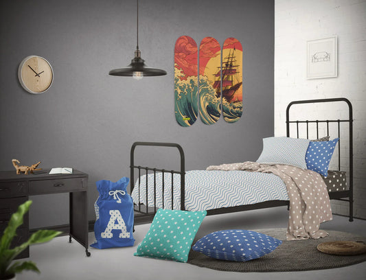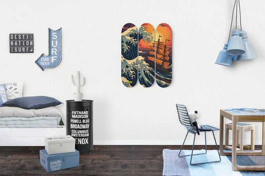 Galleon At The Great Wave Of Kanagawa Triple Skateboard Wall Art