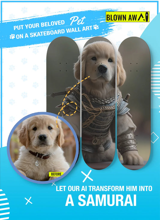 Samurai Warrior Pomeranian Dog Single Skateboard Wall Art