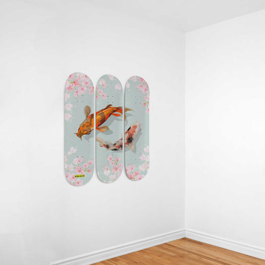 Fish Koi Yin Yang Sakura Triple Skateboard Wall Art